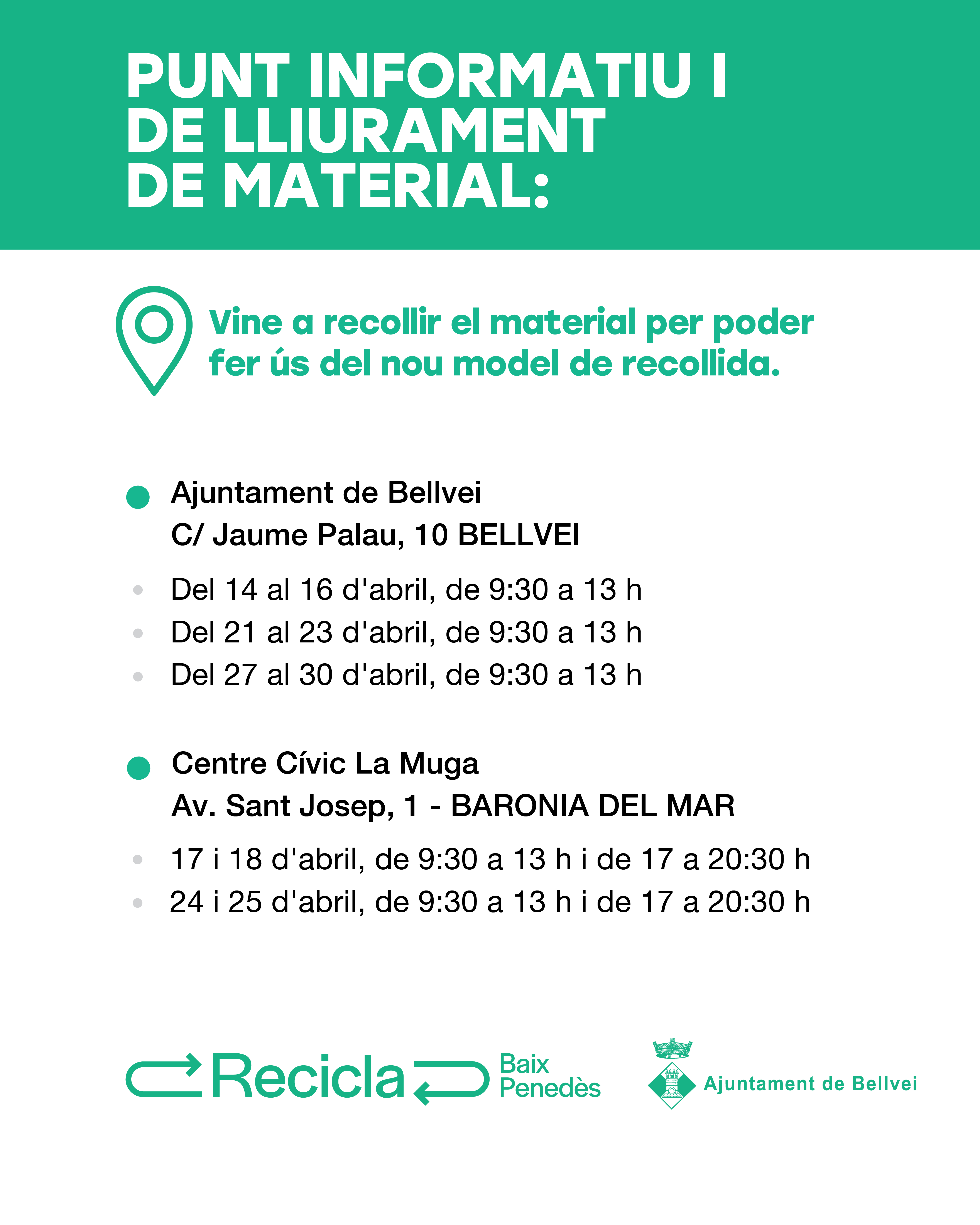 Per poder continuar fent ús del servei de recollida, cal recollir el nou material (targeta actualitzada i informació de l'aplicació).